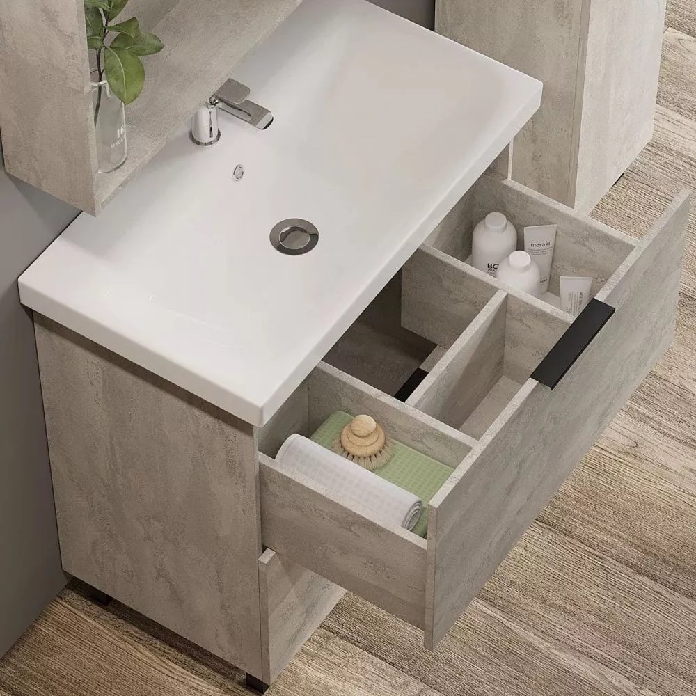 Тумба напольная Viant Берлин 80с раковиной Moduo Бетонный камень VBER80MDC-T2Y