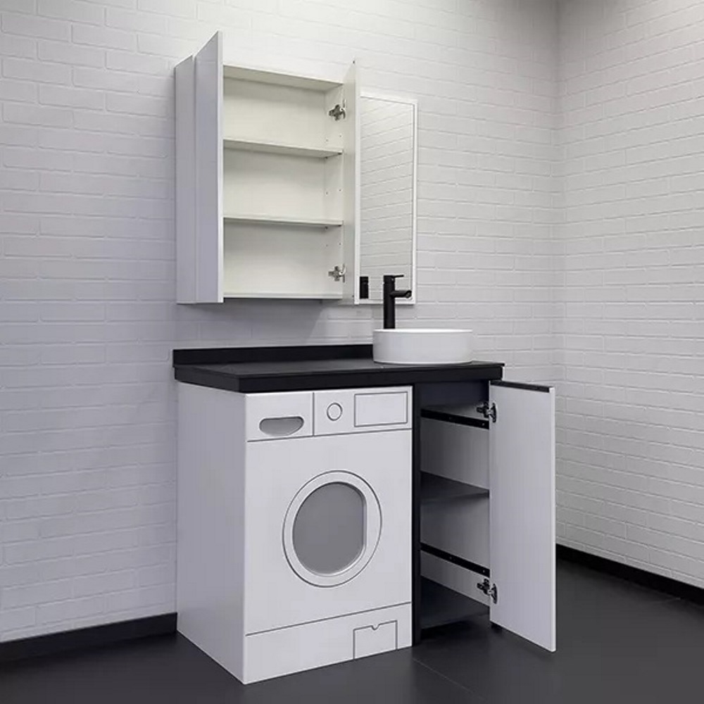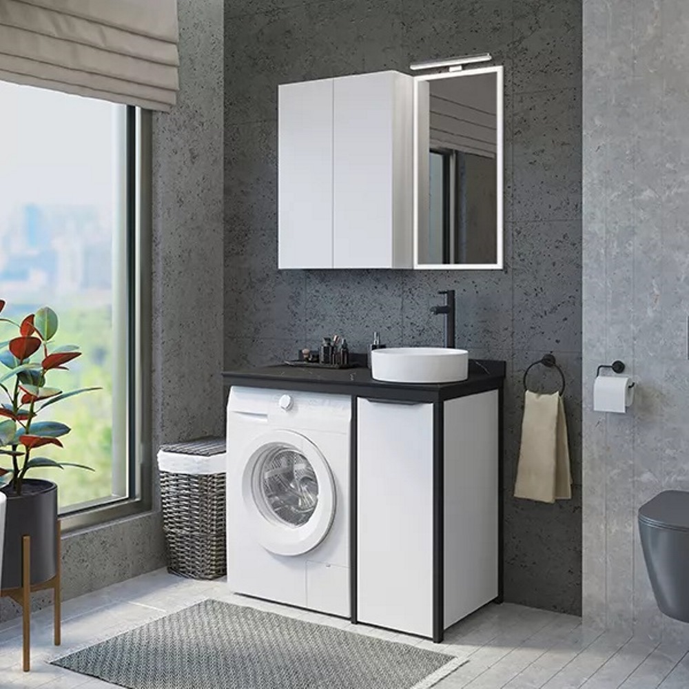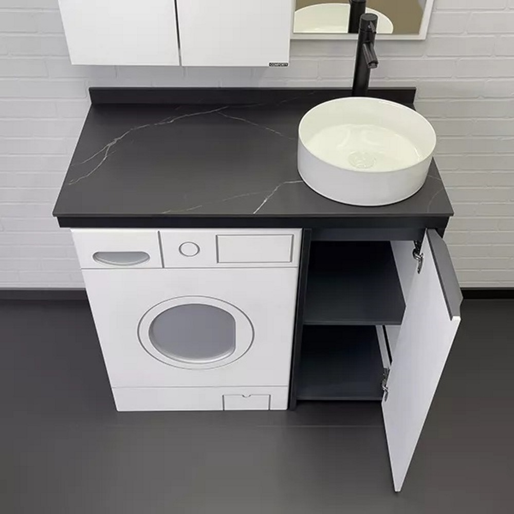 Тумба под стиральную машину напольная Comforty Лозанна 100 со столешницей Калакатта Блэк с раковиной 9111 Белый матовый 00-00013800CF