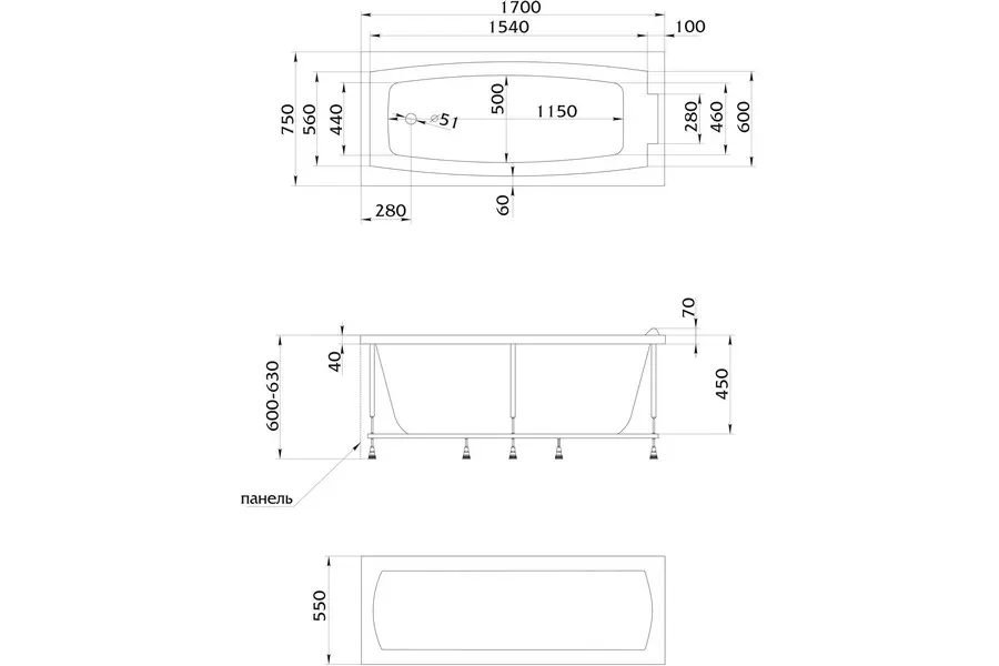 Обратите внимание: В комплект поставки входит только ванна. Аксессуары (смеситель, сифон, перелив) необходимо приобретать отдельно.